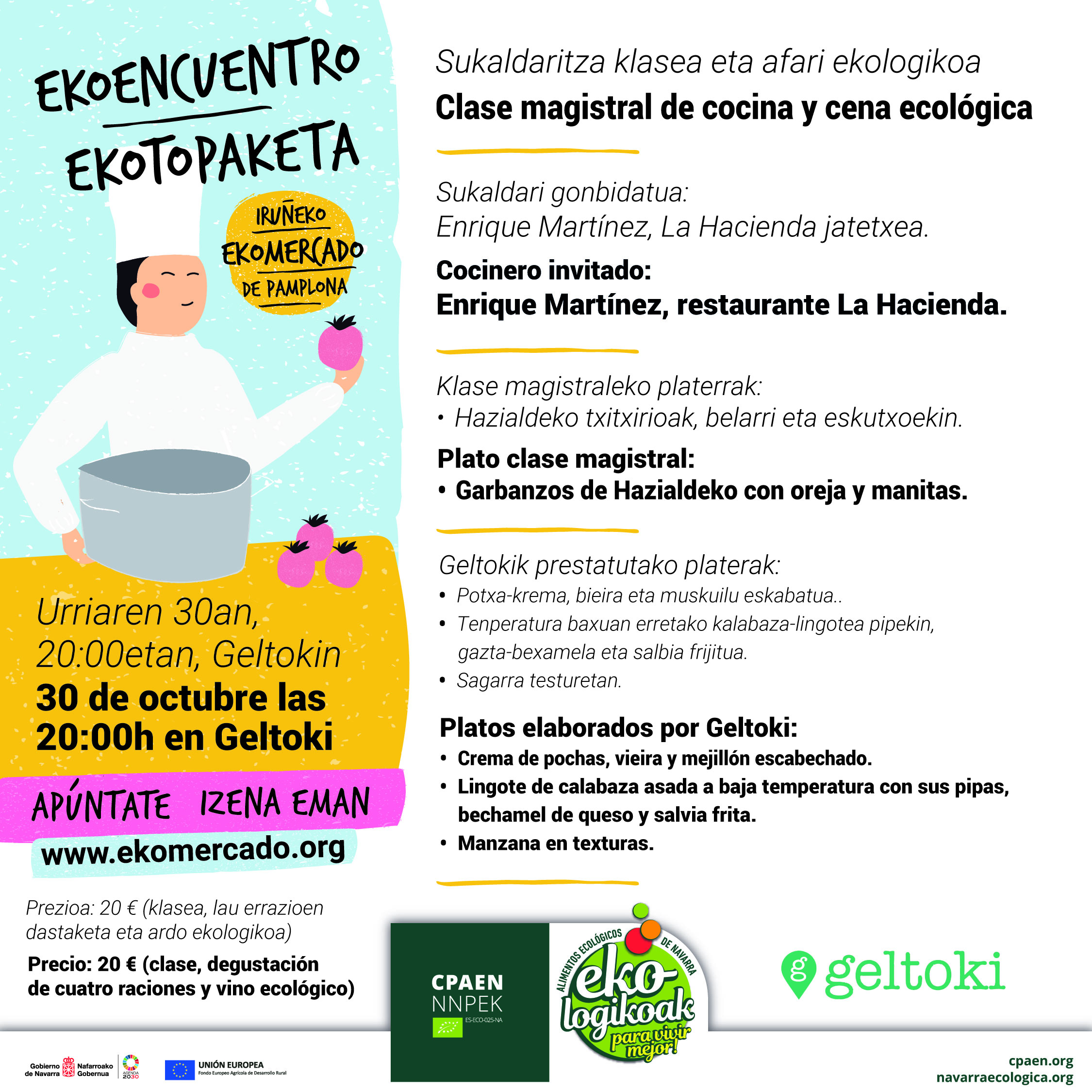 EKOtopaketaren prezioa: 20 € (Klasea, lau errazioak eta ardo ekologikoa barne)